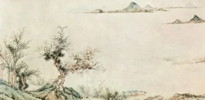 Lu Zhi, Spring Colours in Xunyang, 1554. Ink or paper, detail of a scroll c. 22cm high. Collection of the Freer Gallery of Art. Public domain image from Wikimedia Commons